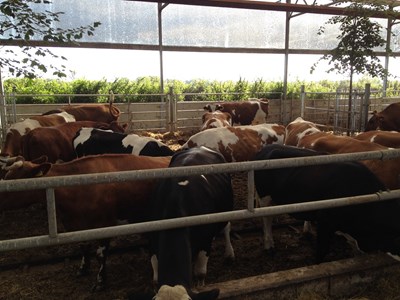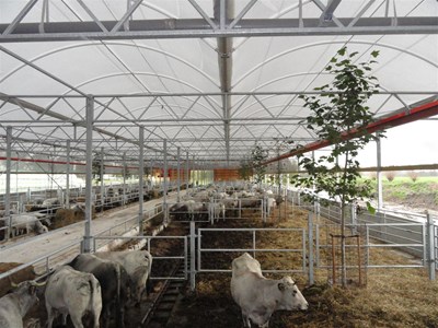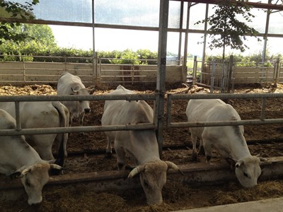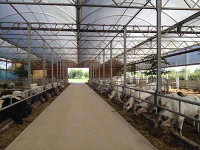 una stalla in pendenza per 100 vacche nutrici Gasconne con i loro vitelli,